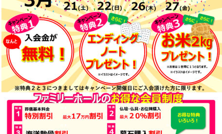 スタッフブログ『【お葬式無料会員入会キャンペーンのお知らせ】』を更新いたしました。
